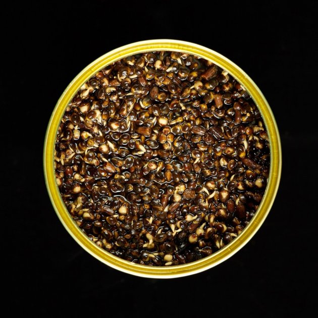 Конопля консервована з цілих зерен – виготовляється безпосередньо в банках, зерна проходять спеціальну термічну обробку, що забезечує максимальне збереження поживних властивостей та аромату продукту. Повністю готова до використання самостійно та в поєднанні з бойлами, пелетсом та іншими сумішами. Склад: зерно коноплі вищого гатунку. Може містити зерно соняшника до +- 2%. Термін придатності: 3 роки. Зберігання при t від 0С до 25С. Після відкриття зберігати не більше 15 годин.